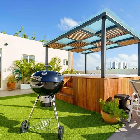 A Cancun nemzetkozi repuloter repülőtér 20 km-re, míg a Fuente buszmegálló 250 méterre helyezkedik el az ingatlantól. A Penthouse With Private Jacuzzi - Three Bedroom apartman biztosít egy kinti úszómedencét.
